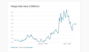 Jakarta – Harga batu bara makin membara. Merujuk Refinitiv, harga batu bara kontrak Mei pada perdagangan Kamis (24/4/2026) ditutup di US$ 129,1 per ton atau melonjak 1,06%.